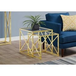 Monarch Specialties ,Nesting Table, Tempered Glass, Glossy White