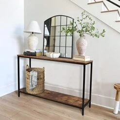 Walker Edison Anastiasia Urban Industrial Metal Wrap Entry Table, 46 Inch, Dark Walnut