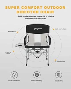 KingCamp Camping Chair Heavy Duty Folding Mesh Chair With Handle And Side Table, 2 Pack