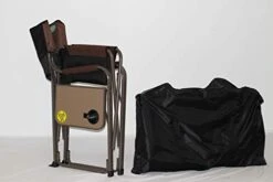 EEZ RV Products Heavy Duty High-Back Folding Director’s Chair W/Side Table & Storage Bag – (Brown)