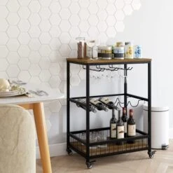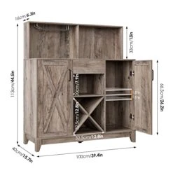 Home Source Bar Cabinet Bookshelf With Wire Mesh Doors In Stone Grey