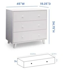 Delta Children Ava 3 Drawer Dresser With Changing Top, Greenguard Gold Certified, White