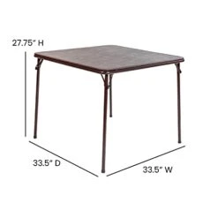 EMMA + OLIVER Brown Foldable Card Table With Vinyl Table Top – Game Table – Portable Table