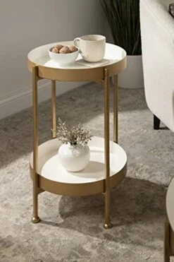 Kate And Laurel Credele Modern-Glam Sofa Side C-Table With Gold Metal Base And Man-Made Marble Top