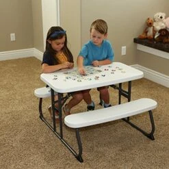 LIFETIME 80160 Commercial Height Adjustable Folding Utility Table, 4 Feet, White Granite