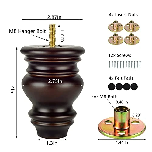 - ⭐【Easy Installation】 Each bun wood leg is equipped with M8 bolt, conforms to US standard. Just unscrew the old ones and screw in the new ones