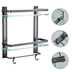 - 2 Installation: AIJALY glass shelf can be drilled and pasted installation: drilled installation, fix the glass shelf to the wall with screws, paste installation, use the special glue we provide to install on various walls [such as tiles, marble, glass , metal and solid wood]