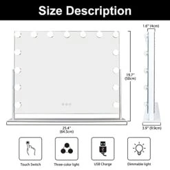 - 【3 Lighting Modes】Hollywood makeup mirror with lights is 3 lighting modes. Warm light (light bulb color) is suitable for party and evening party makeup and natural light close to the sun (daylight color) is suitable for outdoor sports makeup and cool light, is suitable for daily work makeup. According to the memory function, even if it is turned off once, it can be turned on again with the desired brightness.