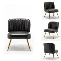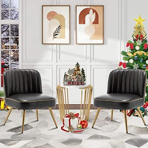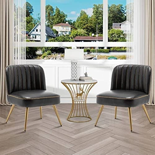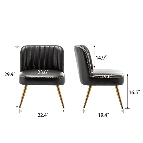 - 【Luxurious and Elegant】Gold drawstring design make the Black leather accent chairs Luxurious and elegant.It is is perfetct for your living room,bedroom,office and so on.Decorating your house will make it more beautiful by using the Small accent chair.You can use this armless accnt chairs in your living room or Office,you can also use it in other places according to your height requirements, when you come home from work or finish housework , It’s a pleasure to sit on it and enjoy a cup of coffee.