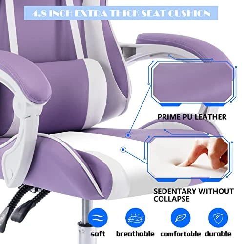 - 🎮【STURDY CONSTRUCTION & ECO FRIENDLY MATERIAL】Gaming chairs Strong alloy frame covered.Thick padded seat cushion made of high density foam is more comfortable and not easy to deform.Heavy-duty chair base and nylon smooth-rolling casters for great stability and mobility. premium PU Faux leather, easy to maintain & fade resistant.