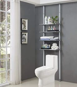 - [LARGE SPACE ORGANIZER] ALLZONE 4-Tier Over toilet shelf provides you roomy storage, it features an open area for easy access to toilet paper, towels, shampoos, and other bathroom essentials. This shelf system is convenient for you to classify toiletries suppliers and keep them organized.