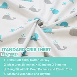 - QUALITY. Snug fit with 9″ deep pockets and elastic trim to fit snuggly around a crib mattress (6″ thick standard crib mattress). Machine washable and dryable.