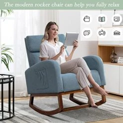 - 【Ergonomic Design】 This glider rocking chair with High Backrest & Thick pillow, Cozy Armrest & Large side pocket,Spacious seat & Gentle rocking base.This ergonomic chair can give you strong support for your whole body,providing you with great comfort when you lean on it or rock it, helping you to relax after a tiring work and perfect for breastfeeding and rocking baby to sleep.