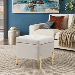 - 【Versatile & Convenient】The flip top ottoman has a hidden storage space for you to set additional clutter, It can save space effectively. It is convenient to move it to any area of your house, this ottoman is ideal for any vanity and it can also be used as additional seat, storage chest, coffee table, footstool and makeup stool.