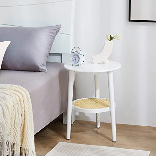- γMaterial & SafetyγThe Apicizon bedside table is made of solid wood and naturally durable rattan, with smooth and eco-friendly coating, which is easy to clean and waterproof. Exquisite arc design can protect your baby when you use it in nursery room.