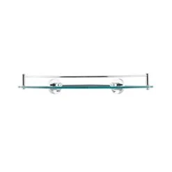 - Elegant, eye-catching and very practical bath wall shelf with a chromed rail and brackets and transparent glass shelf, easily fits into any interior