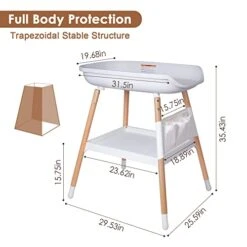 - Strong and Sturdy Construction: Our baby changing table is constructed with high-quality German beech wood, featuring a trapezoidal body that ensures stability and even weight distribution. The non-slip foot covers prevent floor scratches, while the sturdy frame keeps the table securely in place, ensuring the safety of your baby.