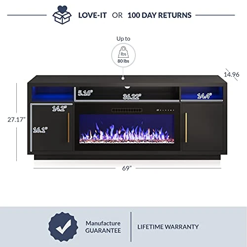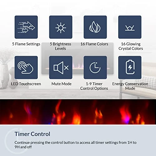 - [Customizable LED Fireplace & Ambiance] The integrated electric fireplace features 16 adjustable color options, providing a captivating atmosphere tailored to your mood, decor, or preference. With 1400 Watts, it delivers 5000 BTUs per hour and heats up to 400 sq. ft, creating a cozy environment for relaxation.