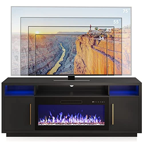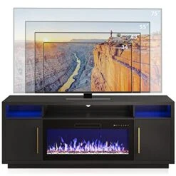 - [Synchronized Color-Changing Lights] Experience a harmonious visual display with both lights on the TV stand changing colors in sync with the fireplace, offering a mesmerizing and immersive effect that elevates your living space.