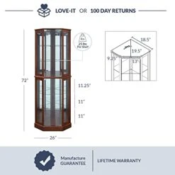 - [VERSATILE STYLE] This tall cabinet has a timeless style which pairs well with other furniture, and it tucks perfectly into any corner. Dimensions: 72″H x 26″W x 19.5″D. Glass shelf thickness: 0.19″. Each shelf holds up to 25 lbs.