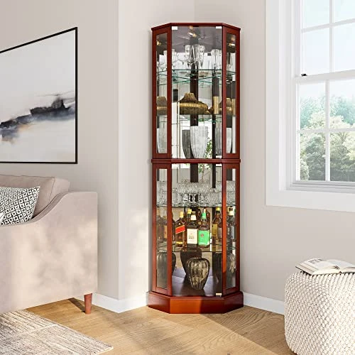 - [BEAUTIFUL DISPLAY] A lit interior and mirrored back panels create an excellent viewing experience. One lightbulb included.