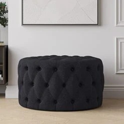 - 【VERSATILE USE】 This 29-inch circular ottoman is perfect for several rooms in your home. Whether you need a place to rest your feet in the living room, seek seating for the bedroom or need an accent piece for the entryway, the versatile upholstered ottoman will suit all of your needs.