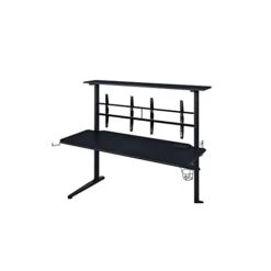 An innovatively constructed piece of furniture, this versatile gaming table with a USB port, is every gamer’s dream come true. With a beautiful black finish and metal structure, the desk also features led light accents for visual appeal to the users. It contains a headset rack, controller rack, and outlets to give the best gaming experience ever. It also has a monitor rack and shelf for computer accessories.