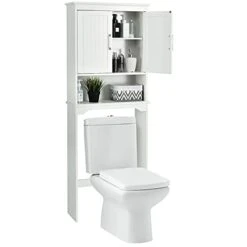 - 3 Storage Shelves — With two shelves behind the two-door and an open shelf on the bottom, this bathroom rack can be used for holding most often used items, such as toilet paper, towels, soap and so on. The 2 doors of bathroom cabinet can prevent items from falling, avoid dust accumulation and also protect your privacy.