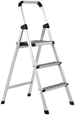 - PORTABLE & COMPACT: designed to be the perfect step ladder for assisting with projects around the house or merely reaching high shelves in your kitchen pantry, closet, or garage. The lightweight design (5.7 lbs.) allows you to move the ladder with ease from project to project. Once you’re finished, the ladder easily folds up and stores away