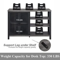 - 【Dimension & Heavy Duty】Overall size: 13.39″D x 47.24″W x 32.80″H. To make the liquor bar cabinet for home as strong as possible, we use 1.18″ thickness chunky tabletop and bottom shelf. The buffet table top can hold up to 330 lbs, and each adjustable shelf can hold up to 110 lbs.