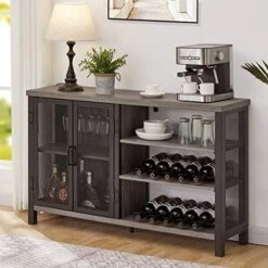 - 【Super Sturdiness & 100% Not Wobble 】The sturdy metal frame ensures the stability and strength of this wine cabinet with storage. Thanks to the high quality material and an extra support leg under the cabinet, this coffee bar cabinet works quite firmly and NOT wobbles after assembly.