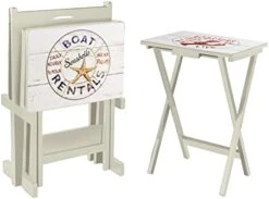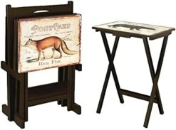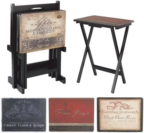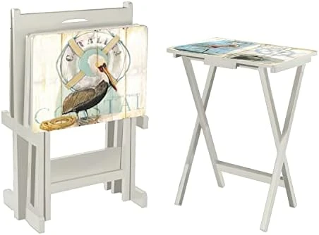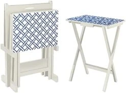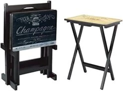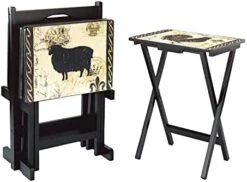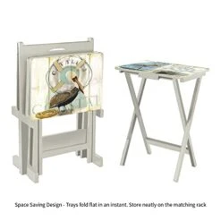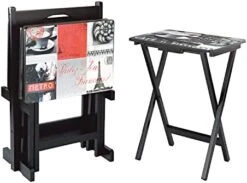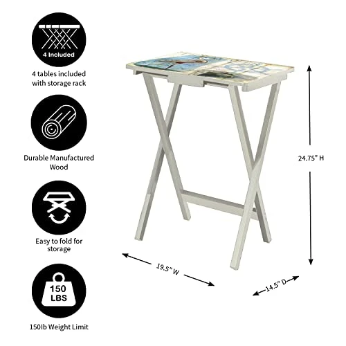 - GREAT SIZE & STORAGE: Set includes 4 tables and storage stand; assembly required. Tray: 19.5″W x 14.5″D x 24.75″H; Stand: 19″W x 14″D x 32″H