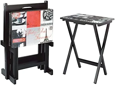 - EASY TO STORE: Folds Flat for Storage! The convenient size and ability to fold up flat for storage purposes will make your life easier. Sturdy Storage Stand Included a sturdy storage stand is included to house Evergreen’s set of 4 TV Trays.