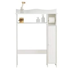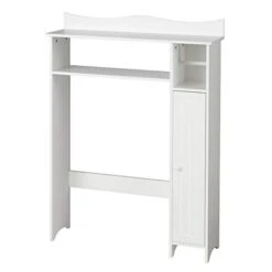 - The curved top design, white finish and side cabinet could perfectly blend in various decoration styles and leave your guests a deep impression.