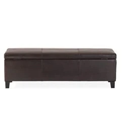 - Give your home a refined design with a beautiful, Faux leather storage ottoman bench. Made from solid wood, this storage ottoman bench is suitable for storage, seating or use as a coffee table. The rectangular form lends itself to a number of placements among your existing furniture arrangement. The versatility of the padded storage ottoman bench makes it a must have.