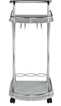 - Two (2) tiers of white tempered glass shelves with safety guardrail