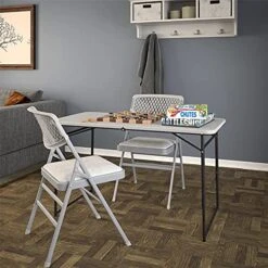 - Lightweight, fold-in-half design makes this table easy to transport and carry