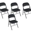 - Stable steel frame has a 75 lb. weight capacity rating for the chair and a 100 lb. weight capacity rating for the table. Open chair dimensions are 15″ D x 14.2″ W x 23″ H. Chair folds to 2.1″ D x 14.2″ W x 28.5″ H. Table dimensions are 24″ D x 24″ W x 21.9″ H