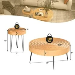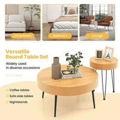 - γSpacious & Thick TabletopγEach end table is designed with a spacious round tabletop, providing ample storage space to place your cups, snacks, books, plants, decorations and more. And the wood tabletop is thicken and waterproof, which is easy to clean with a damp cloth.