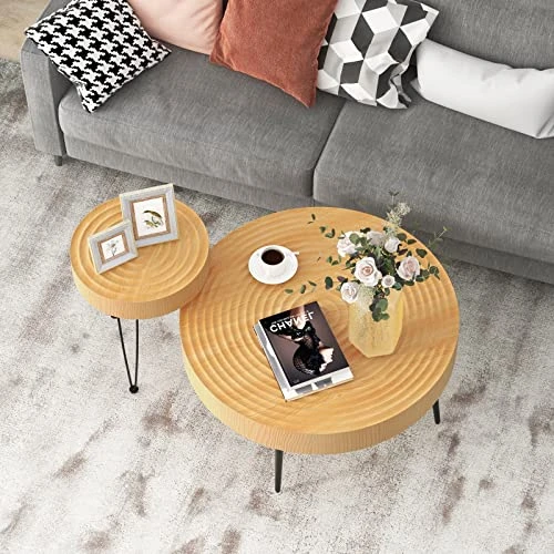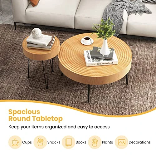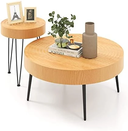 - γVersatile Round Table SetγThis furniture set comes with a large and a small round table, and you can use them in combination for more space-saving or separately for more flexibility. It can not only serve as coffee tables to enjoy your quality time, but also as sofa side tables or nightstands to store the daily necessities.