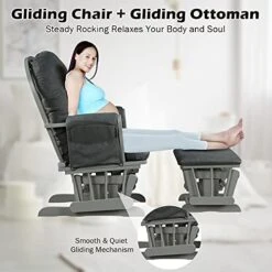 - Wide Application: This glide rocker is so practical that you can use it for reading, napping, or babysitting. It is very suitable for any stage of maternity and the elderly. With modern color matching, it can be placed in the living room, bedroom, nursery and other occasions. And it is easy to assemble, saving your time and energy.