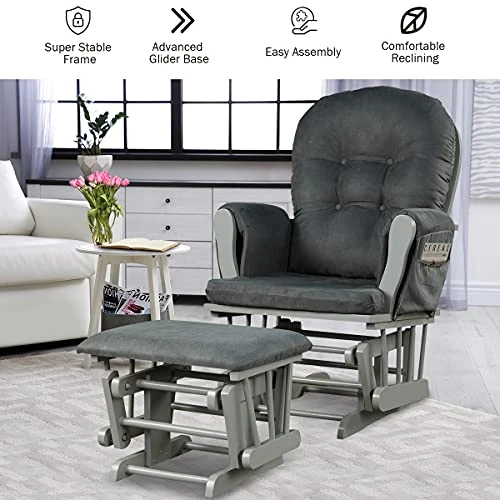 - Sturdy Solid Wood & High Stability: This glider and ottoman set is made of sturdy rubber wood and bentwood with well-polished surface. It will provide strong support to bear the weight of 396 lbs. And the wide feet also increase the overall stability without wobbling or tipping over.