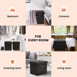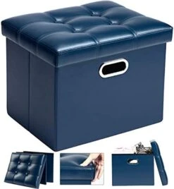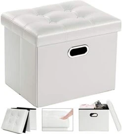 - 🪑【VERSATILE & PRACTICAL】 This multipurpose leather ottoman can provide extra seating as a step stool/bench, serve as a storage box or work as a drinks desk/table/tray after flipping the lid over and many other practical options and daily uses, while the PVC leather helps the surface waterproof and easy-care