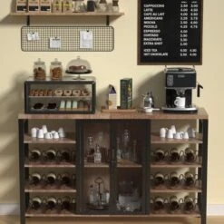 - OTHER BOOZE-FREE USES: Go beyond the booze. This multipurpose bar furniture can also double as a buffet cabinet or coffee bar for your espresso machine and crazy mug collection. Alternatively, you can use it as a kitchen bar table, display stand, console table, and more! When it comes to this bar cabinet, the world is your wine.