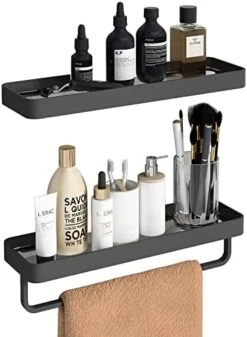- ✅【Modern Design】Simple and clean lines paired with polished metal texture, this wall mounted shelf will also give a touch of elegant and rustic to your bathroom.