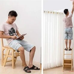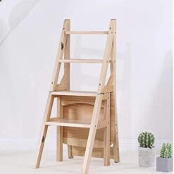 - Advantage: Compact size folds down easily for convenient storage and transportation. Wide wood steps with non-slip tread for extra safety.
