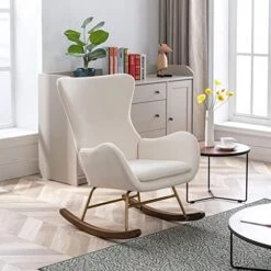 - [Rocks Gently & Comfortable]- This rocking nursing chair adopts excellent radian design, and there are non-slip foot pads under the legs, making it rock gently and smoothly. This thoughtful design is suitable for relaxing or babies nursery, relieving your fatigue of the day effectively