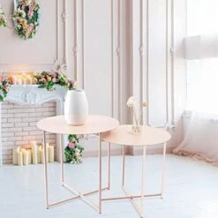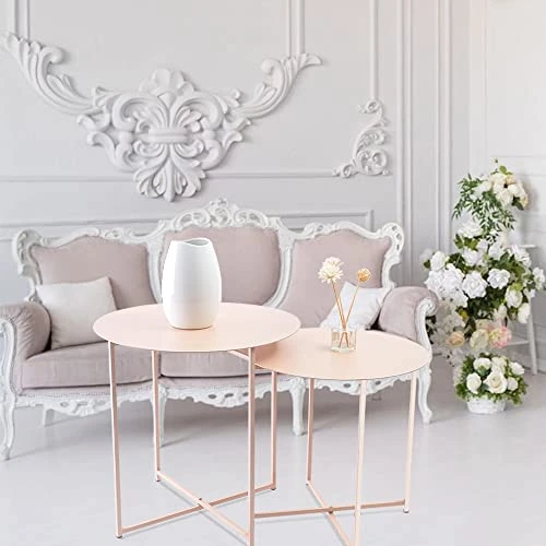- ☕Premium Quality: Apricot end side table is made of light weight metal and with smooth powder matte coating, which is anti-rust to ensure long lasting durability. With footmat of each leg for anti-slip and protect you floor from screatching