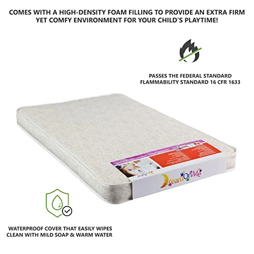 - HASSLE-FREE MAINTENANCE: The Dream On Me 3″ Rounded Corner Playmat features a reinforced waterproof cover & binding that resists liquids and stains, ensuring effortless cleaning. You can conveniently wipe it clean with mild soap and water.
