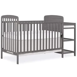 - USEFUL CHANGING TABLE: The Anna is fitted with a changing table with a custom fit 1” changing pad. There are two open storage shelves beneath the table, with ample space to store baby essentials